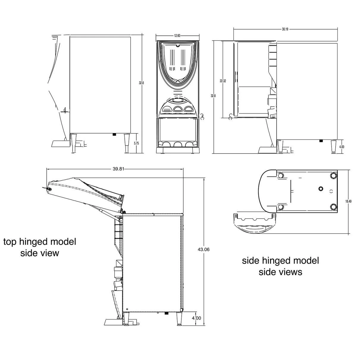 - Front access to tank drain, dump valves, auger and whipper motors, and control board for simple service setup and calibration.
